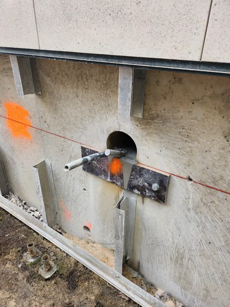 Implantation et forage des tirants jusqu’au sol porteur, injection/scellement ;