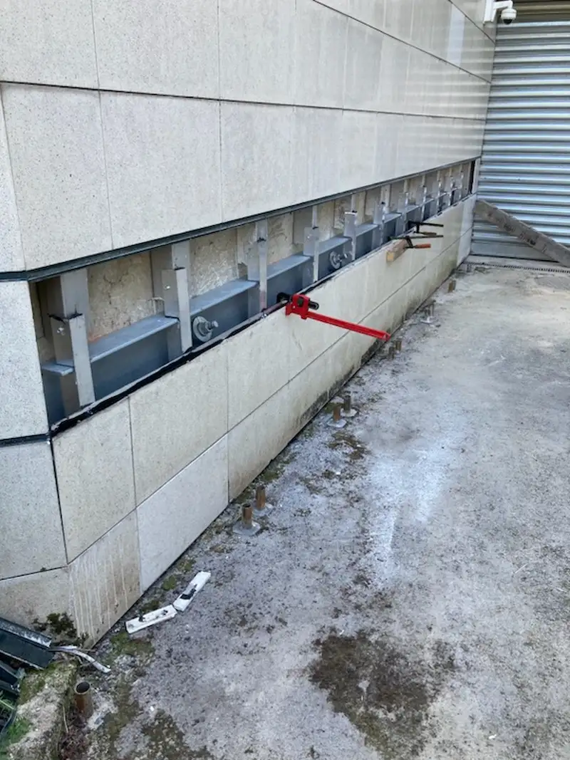 Pose de la muraillère, platines et ancrages chimiques/mécaniques ;