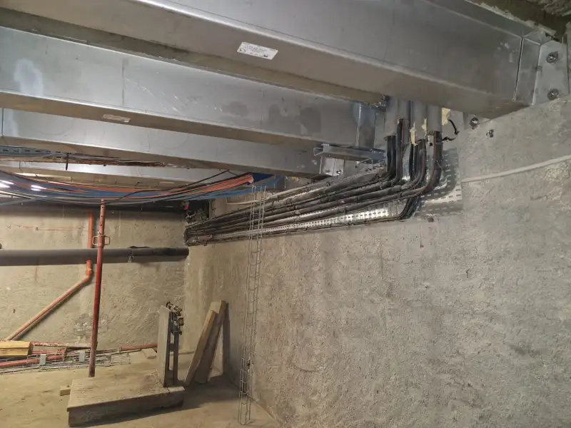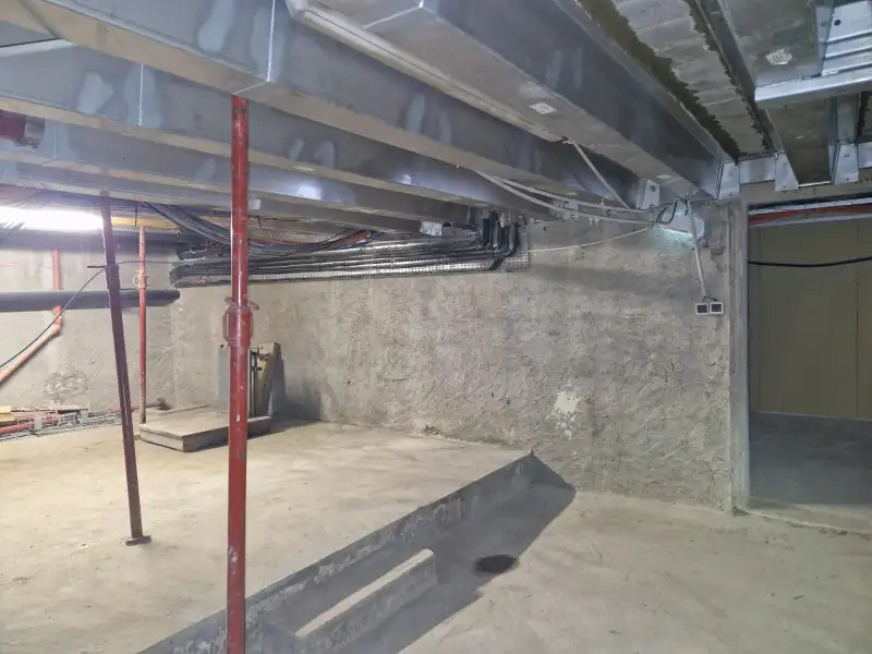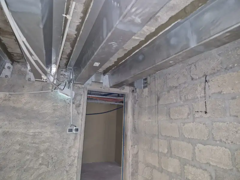 Au lycée Carcouët (Nantes), un plancher poutrelles/hourdis supportant des chambres froides présentait des poutrelles éclatées, aciers oxydés et zones humides récurrentes (risque de point de rosée). Les contraintes de calendrier, la densité de réseaux et l’exigence de propreté ont orienté le choix vers le procédé Noubau : une substitution fonctionnelle des poutrelles rapide, documentée et compatible avec les milieux sensibles.