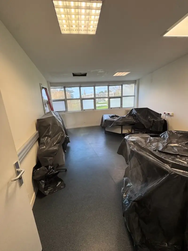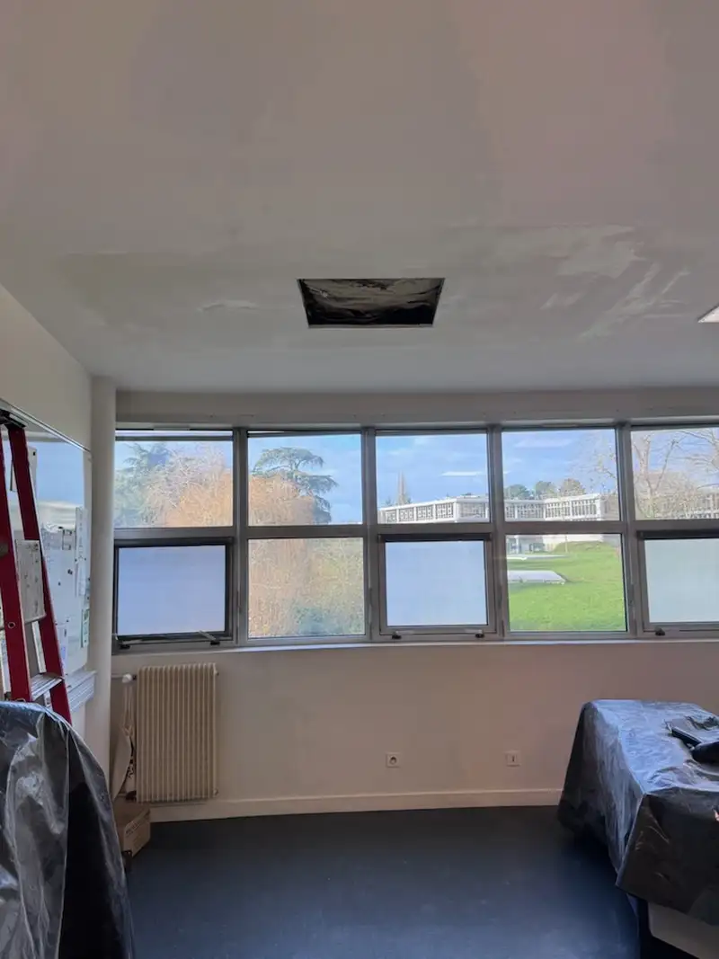Objectif atteint : bureau réouvert en 24–48 h selon temps de prise/peinture et petite ventilation de confort.