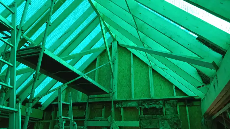 Le chantier a respecté un PPSPS rigoureux : travail en hauteur, manutentions, coactivité. Les déchets issus de la déconstruction (bois brûlé, isolants, parements) ont été triés et évacués vers filières adéquates. Des mesures d’empoussièrement et d’odeurs ont guidé les nettoyages et assainissements avant reconstitution des parois. Les matériaux neufs ont été choisis dans des classes de service adaptées, avec une attention portée à la durabilité (traitements, protections aux points d’eau).